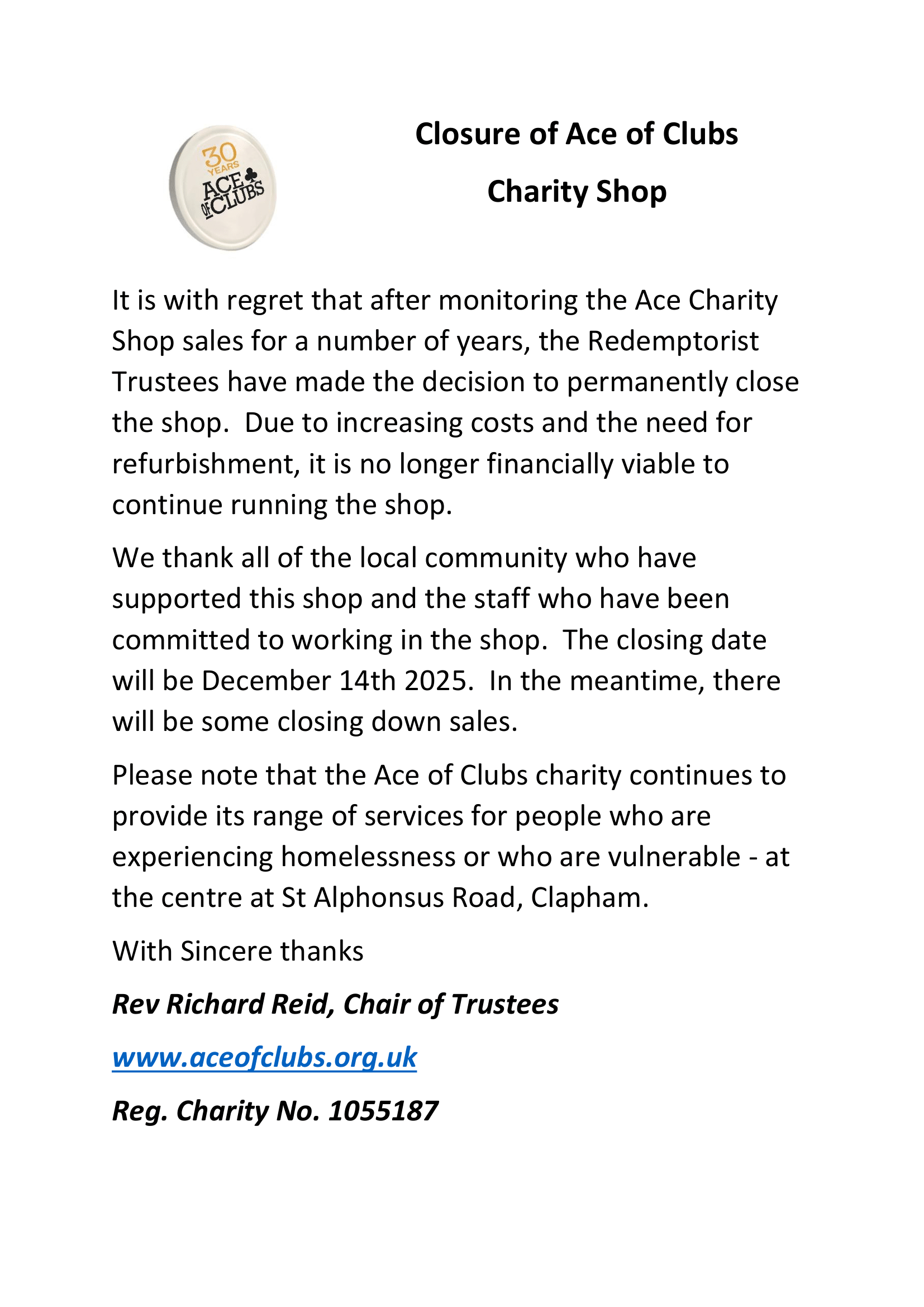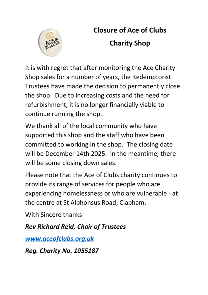 As Clapham has changed around us, we have stayed at its heart. We haven’t turned into a posh boutique store, but have kept providing the allure of the unexpected. And, of course, all of our proceeds go towards supporting the work of Ace of Clubs in the community.